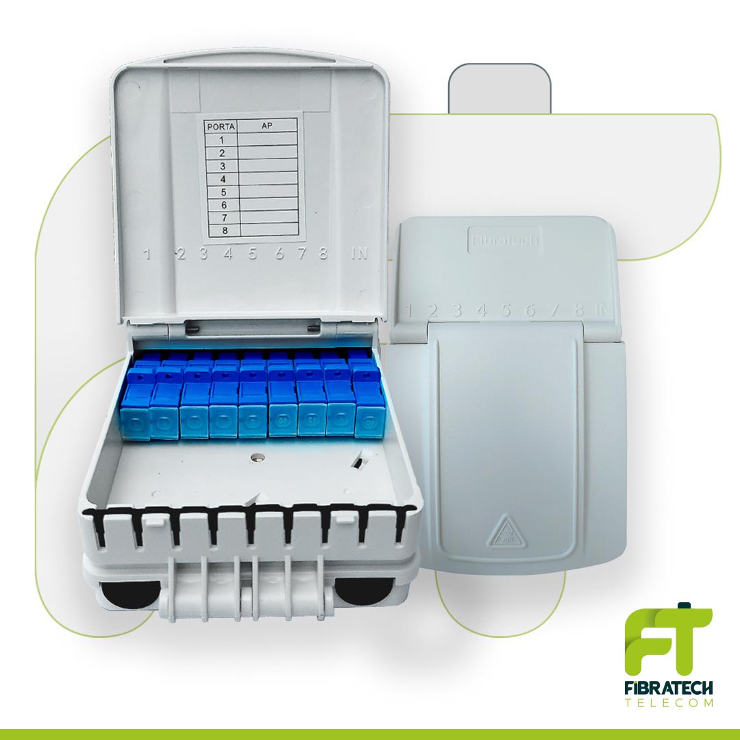 Caixa de Atendimento FIBRATECH, Indoor, Branca, pre montada com Splitter 1x8 UPC