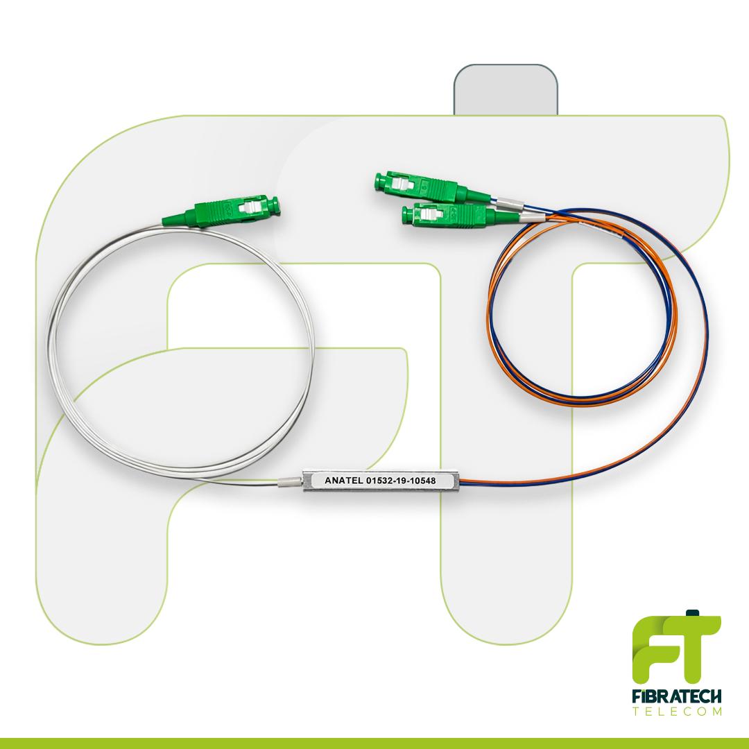 Divisor Optico PLC Splitter, FIBRATECH, 1x2 conector APC/Verde, embalado em Blister