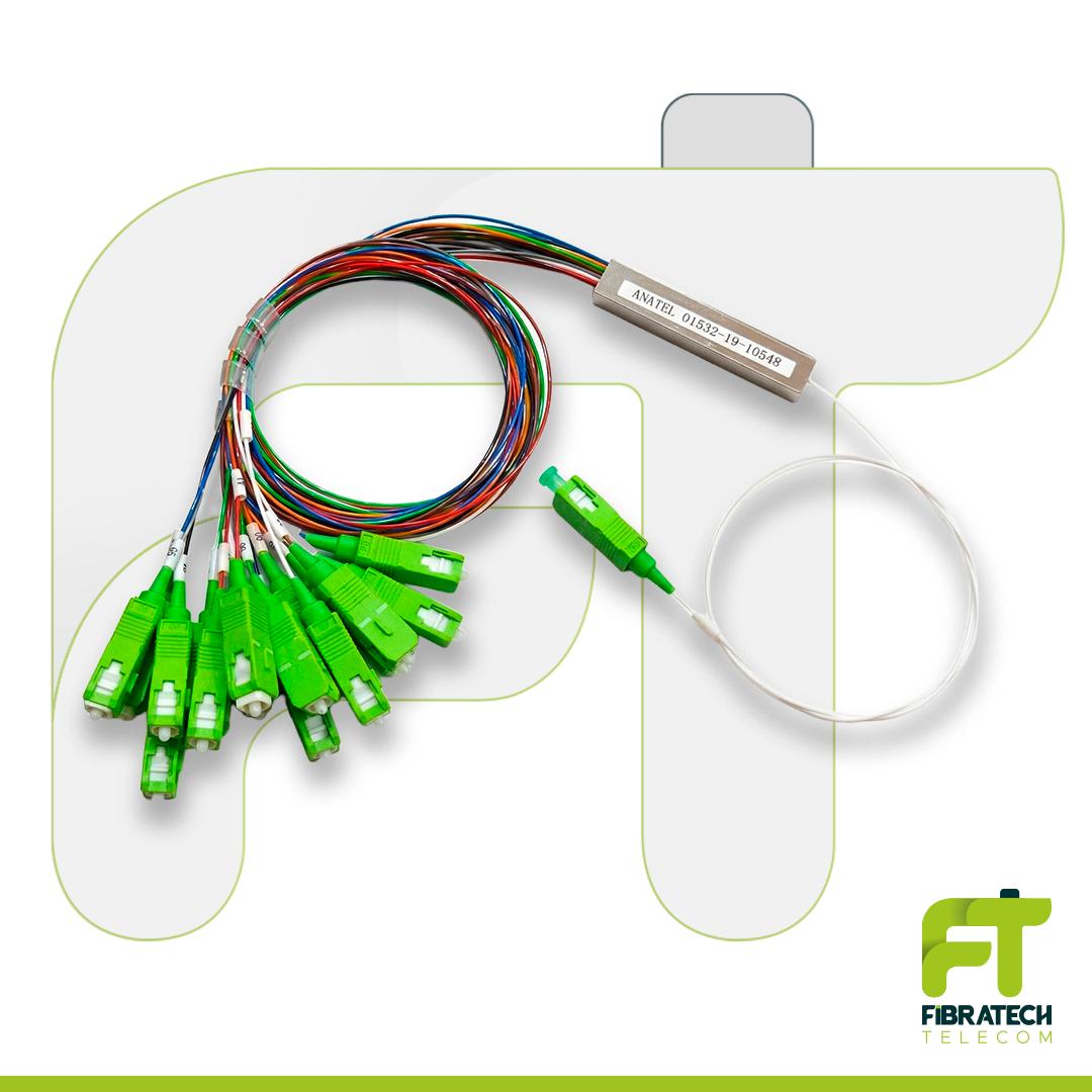 Divisor Optico PLC Splitter, FIBRATECH, 1x16 conector APC/Verde, embalado em Blister